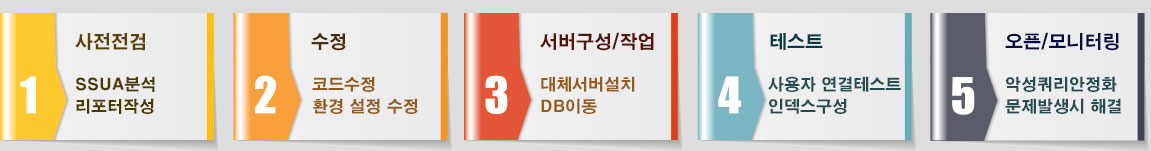 아이티브라운의 SQL Server 마이그레이션 컨설팅은 이전 버전의 SQL Server를 최상의 성능과 기능을 제공하는 최신 버전 으로 안전하게 전환할 수 있도록 합니다. 마이그레이션 후 문제가 발생할 수 있는 사항을 사전에 확인하고 충분한 테스트를 거쳐 실 운영서버로의 이전을 안정되고 신속하게 진행할 수 있습니다.마이그레이션 완료 후 안정화 모니터링을 통해 안정적인 서비스가 가능하도록 지원 합니다.